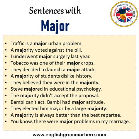 a sentence using major. There are any references about a sentence using major in here. you can look below.