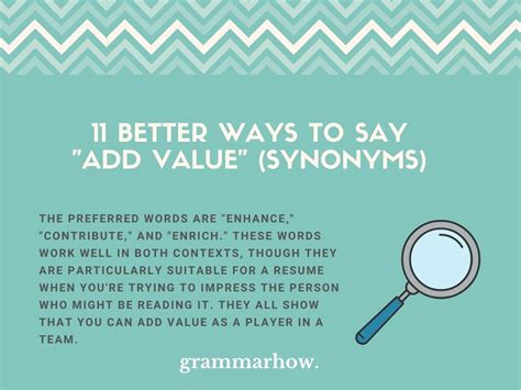 add more value synonyms. There are any references about add more value synonyms in here. you can look below.