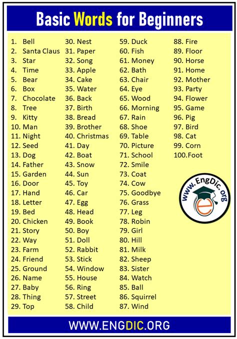 basic english words list for beginners