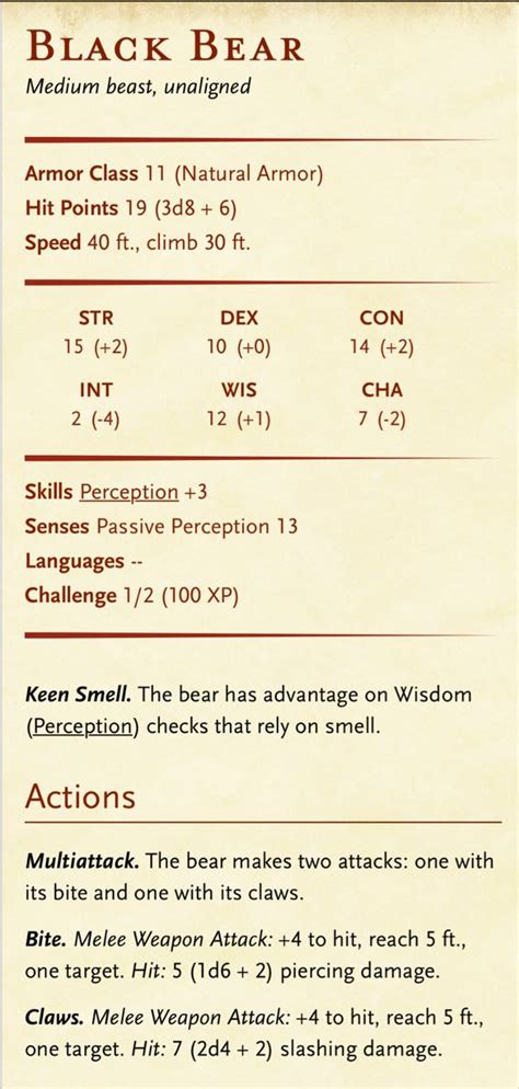 black bear stats 5e