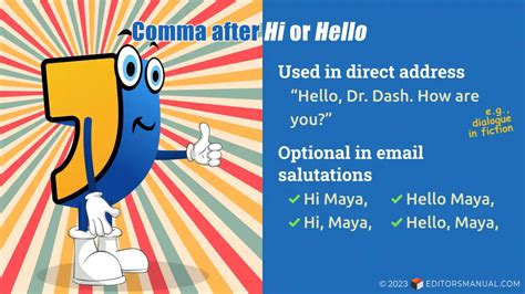 do you use comma after hello. There are any references about do you use comma after hello in here. you can look below.