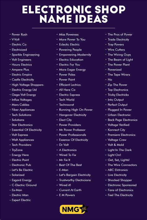 electronic shop names. There are any references about electronic shop names in here. you can look below.