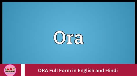 full form of ora. There are any references about full form of ora in here. you can look below.