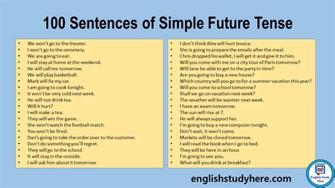 simple future tense 100 examples. There are any references about simple future tense 100 examples in here. you can look below.