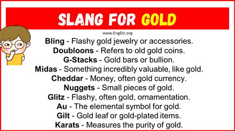 slang for gold. There are any references about slang for gold in here. you can look below.
