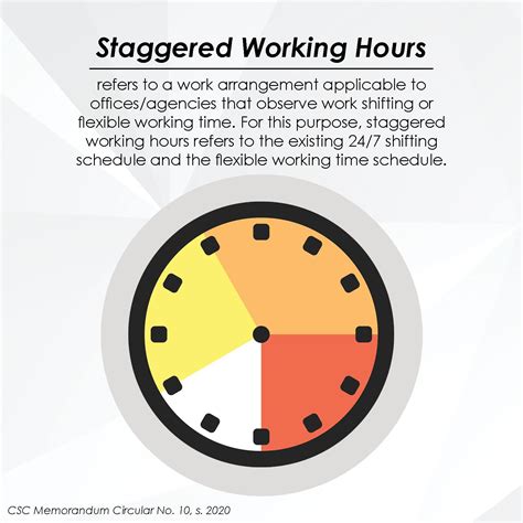 staggered working hours. There are any references about staggered working hours in here. you can look below.