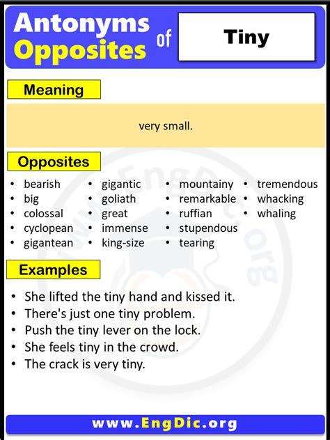 tiny antonyms only. There are any references about tiny antonyms only in here. you can look below.