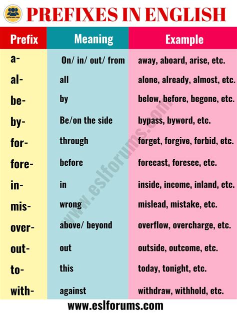 top prefix words
