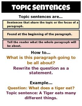 topic sentence anchor chart 4th grade