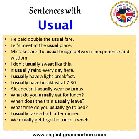 usual example sentence. There are any references about usual example sentence in here. you can look below.