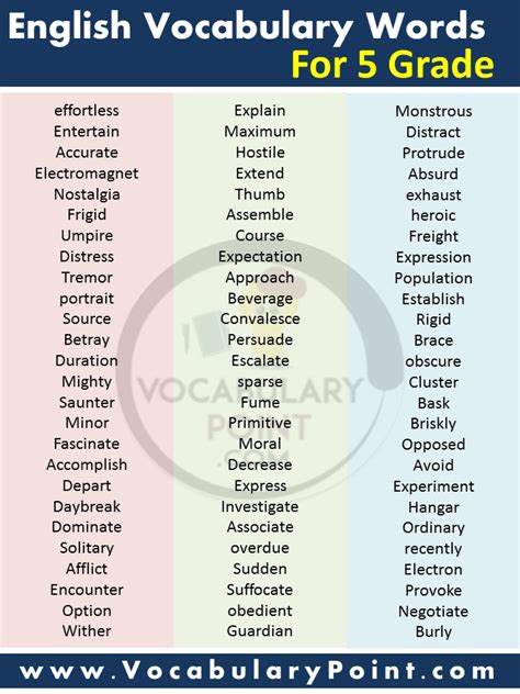 words for class 5th